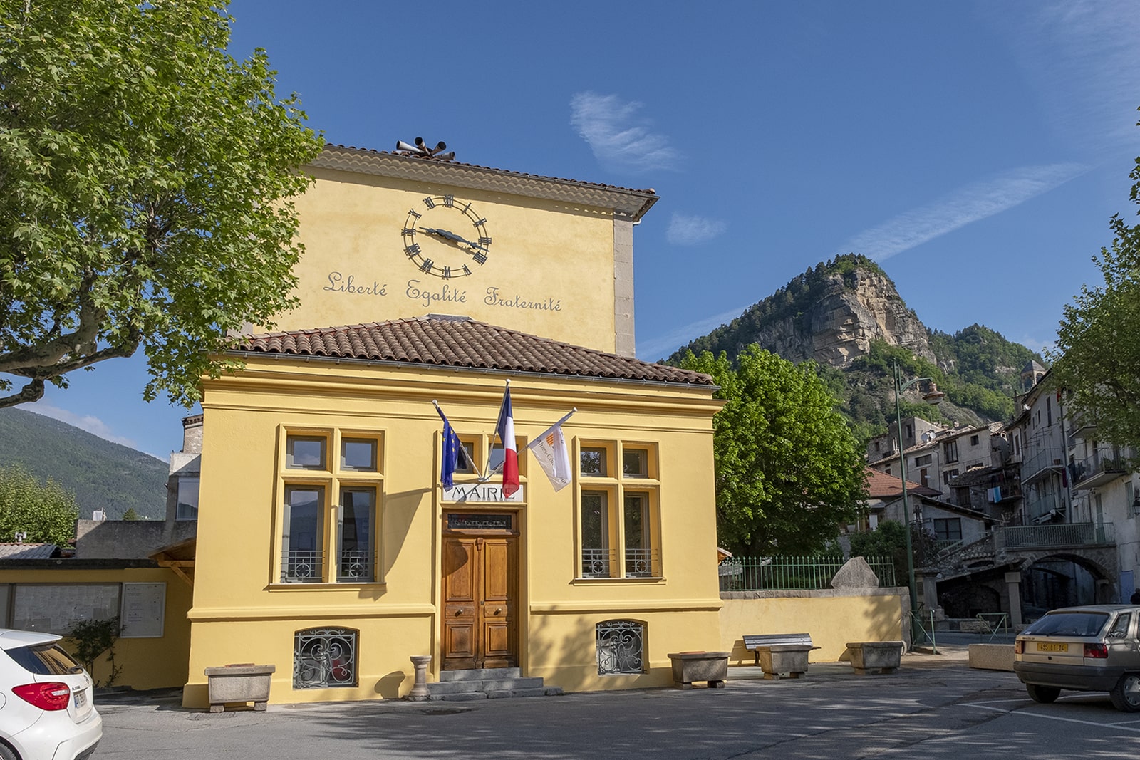 La rénovation de la Mairie d’Annot a consisté en une isolation thermique intérieure des murs et de la toiture, la réorganisation des 300m² sur 2 niveaux comprenant la Salle de Mariage, les bureaux d’accueil, les bureaux administratifs, les sanitaires/cuisine, les locaux associatifs, les salles de réunion, les bureaux de la Direction et des élus. Le ravalement de façade a également été réalisé en profondeur avec purge totale de l’ancien revêtement et réalisation d’un enduit à la chaux traditionnelle. La façade principale a également été travaillée avec l’installation d’une horloge et d’une écriture réalisée en technique traditionnelle.
